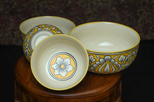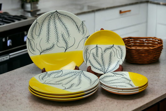 Beautiful White & Yellow Dinner & Quarter Plate Set