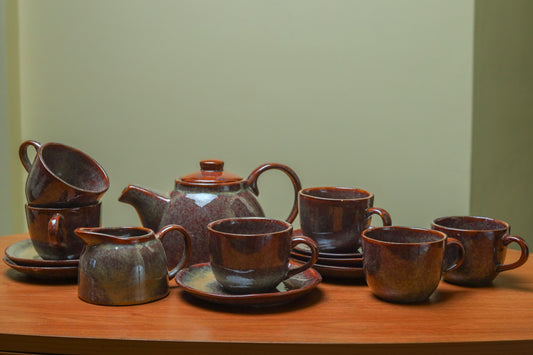 Antique Tea Set with Kettle, cups and Milk Pourer